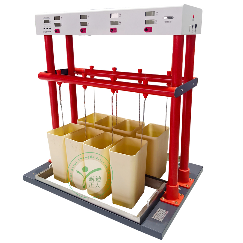 KDJS-6絕緣手套耐壓試驗裝置是絕緣靴(手套)批量試驗的專用設備,有效地解決了以往不規則的測試方法,簡化了測試程序,提高了檢測速度,減輕了檢測強度,保障了檢測人員的安全,可靠地鑒別絕緣手套(靴)的泄漏電流,絕緣老化和工頻耐壓等參數,可同時檢測六只絕緣手套(靴)。