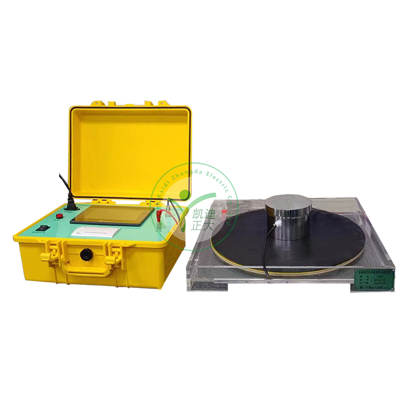 本裝置由三部分組成:試驗主機,加壓電極,接收電極。試驗主機內部集成正弦波逆變電源和測量模塊,使用外部220V交流電源即可產生穩定的單相交流600V試驗電源并自動測量、計算試驗結果。