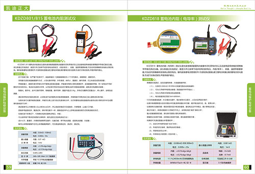 KDZD801/815蓄電池內(nèi)阻測(cè)試儀抗干擾能力強(qiáng),在嚴(yán)重干擾條件下,液晶屏最后一位數(shù)據(jù)能穩(wěn)定在±1個(gè)字范圍內(nèi),讀數(shù)穩(wěn)定,重復(fù)性好,采用最高新的液晶觸摸操作方式,人性化操作界面,外形美觀,體積小,重量輕,操作簡(jiǎn)單,讀數(shù)穩(wěn)定,重復(fù)性好。采用最高新液晶觸摸屏操作方式,人性化操作界面,外形美觀,體積小,重量輕,操作簡(jiǎn)單,可以快速完成現(xiàn)場(chǎng)測(cè)量;存儲(chǔ)容量大,能夠在表內(nèi)存儲(chǔ)5200節(jié)蓄電池的測(cè)試數(shù)據(jù),并配備專用的計(jì)算機(jī)管理軟件,實(shí)現(xiàn)數(shù)據(jù)的存儲(chǔ),同一塊電池不同時(shí)期技術(shù)狀態(tài)的對(duì)比,電池劣化趨勢(shì)分析等,從而實(shí)現(xiàn)可預(yù)見(jiàn)性地及時(shí)對(duì)蓄電池進(jìn)行修復(fù)或者更換,避免發(fā)生電源斷電故障,智能化,數(shù)字化,全中文操作菜單,準(zhǔn)確測(cè)量,操作簡(jiǎn)單;重量不超過(guò)0.5kg,手持式與腰胯式雙重設(shè)計(jì),單人操作,全程自動(dòng)測(cè)量,滿足各種電池內(nèi)阻檢測(cè)標(biāo)準(zhǔn),須收錄齊全的蓄電池內(nèi)阻參數(shù)數(shù)據(jù)庫(kù),并能在儀表上進(jìn)行結(jié)論性查詢和分析,也可將蓄電池測(cè)試數(shù)據(jù)用U盤導(dǎo)出到計(jì)算機(jī)軟件中生成圖表和曲線進(jìn)行分析;測(cè)試報(bào)表可以方便的導(dǎo)入EXCEL和Word文件,并以指定的格式打印成報(bào)告,方便管理,以減少工作量,四端多用途測(cè)試夾,集測(cè)試夾,探針等功能于一體,能夠適應(yīng)98%以上的電池連接安裝方式和電池連接安裝方式和電池極柱形式,在強(qiáng)紋波干擾情況下,可準(zhǔn)確在線測(cè)試蓄電池電壓,內(nèi)阻。可按照用戶需求定制更新儀表程序,最高新的交流放電測(cè)試方法;設(shè)計(jì)小巧,重量輕,方便使用者攜帶及操作,儀器功能,單節(jié)電池測(cè)量,成組電池測(cè)量,示波器,采用按鍵作操作也可以采用觸摸屏操作,可任意選擇測(cè)試夾,測(cè)試針,測(cè)試鉗。