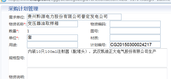 2、全資企業(yè)2家——貴州黔源普定電站,招標(biāo)采購(gòu)我司KDJJC-80KV絕緣油介電強(qiáng)度測(cè)試儀http://www.ggzzzy.cn/news_detail/newsId=524.html。貴州黔源引子渡發(fā)電廠,多次采購(gòu)我司KDJJC-80KV和KDYDJ產(chǎn)品http://www.ggzzzy.cn/news_detail/newsId=419.html;