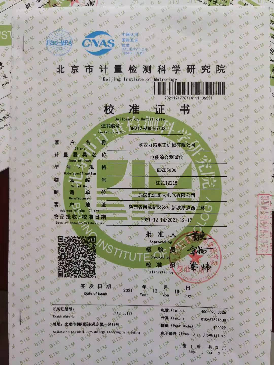 電能綜合測試儀,經北京市計量檢測科學研究院校準和檢測,產品幾乎符合國家標準,最終合作圓滿成功。