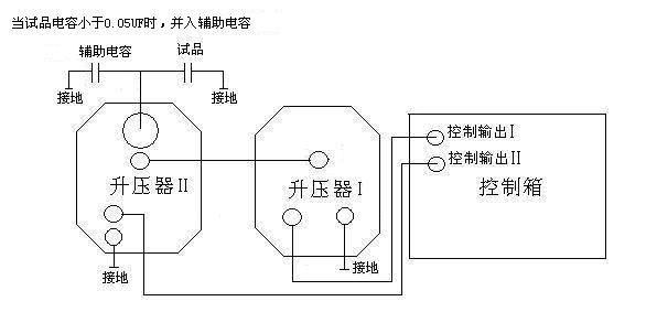(2)I號升壓器和II號升壓器串聯(lián)使用(試驗電壓≤80KV)連線方法