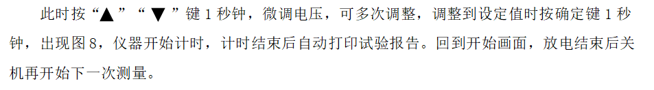 ★另外還有兩種非正常停機:過壓保護(hù)停機、過流保護(hù)停機。停機后出現(xiàn)相應(yīng)的提示界面,放電結(jié)束后,再調(diào)整限制電壓值或限制電流值,再開始下次測量。