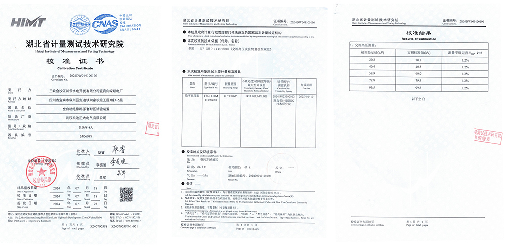 近日三峽金沙江川云水電開發(fā)有限公司宜賓向家壩電廠訂購的我司KDJS-8A全自動絕緣靴手套耐壓試驗裝置,設(shè)備順利通過了湖北省計量測試技術(shù)研究院的嚴(yán)格檢測。