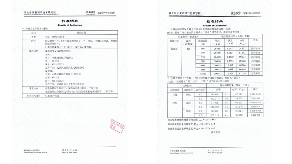 KD212電纜故障綜合測試儀嚴格遵循了JJG 840-2015《函數發生器》等相關校準標準,確保了測量結果的準確性和可靠性。在頻率測量方面,該測試儀覆蓋了從直流(DC)到500MHz的寬廣范圍,充分滿足了現代通信和電力系統中對高頻信號測試的需求。同時在電壓測量上,KD212也展現出了精度和穩定性和優勢,測量范圍可達(0.001~100)V,確保了在不同電壓等級下的電纜故障檢測都能得到準確無誤的結果。