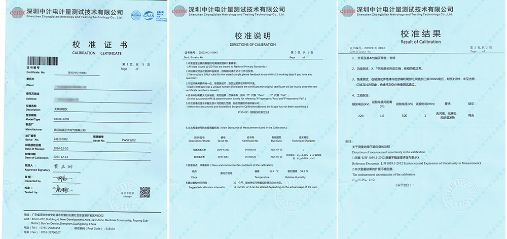 近日,廣東某能源發(fā)展有限公司訂購我司的KDHX-3208無線核相儀順利通過了深圳中電計量測試技術(shù)有限公司的專業(yè)校準,獲得校準證書。